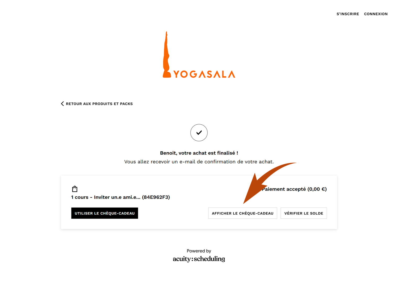 Utiliser le Chèque-cadeau: Programmer le cours pour votre invité.e OU